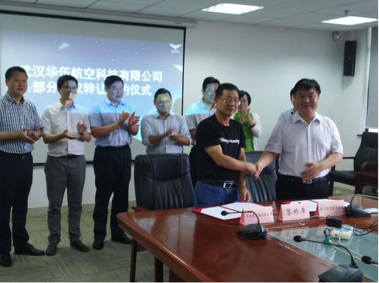 2017年9月12日,漳富公司與武漢華伍航空科技有限公司成功簽訂股權(quán)轉(zhuǎn)讓協(xié)議,漳富公司將持有武漢華伍航空科技有限公司25%的股權(quán)。荊門市人民政府黨組成員湯旺林、漳河新區(qū)黨委書記陳保寧、漳河新區(qū)人大聯(lián)絡(luò)組組長(zhǎng)高東杰、漳富公司董事長(zhǎng)李紅軍參加了簽約儀式。
